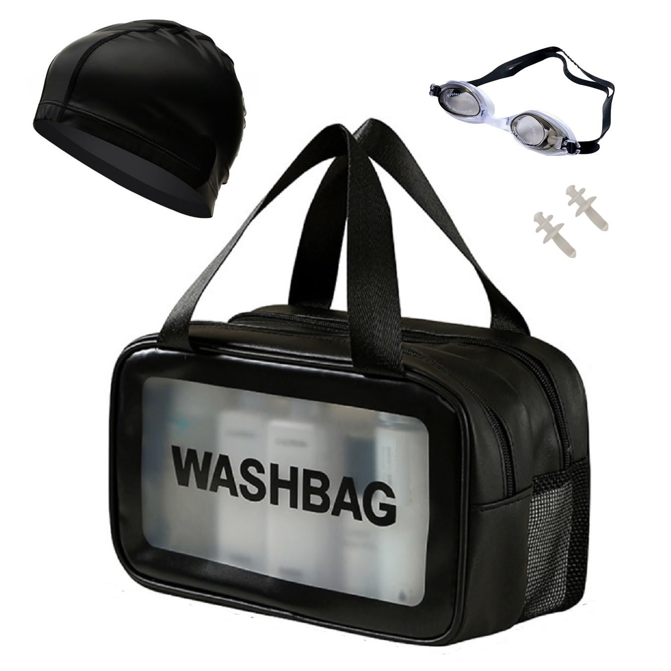 NexTrendy Набор для плавания в бассейне: сумка, очки, шапочка, 3 предмета, (Черный, Большой) чёрный