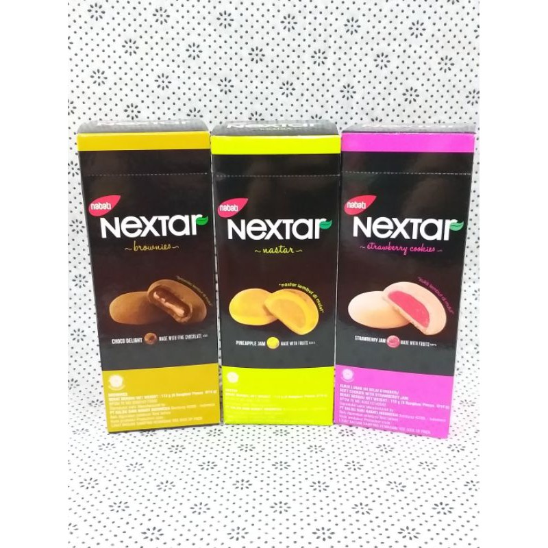 Nabati Nextar mengeluarkan beberapa varian rasa, yaitu Nextar Brownies Choco, Nextar Cookies Strawberry dan Nextar Nastar Pineapple.
