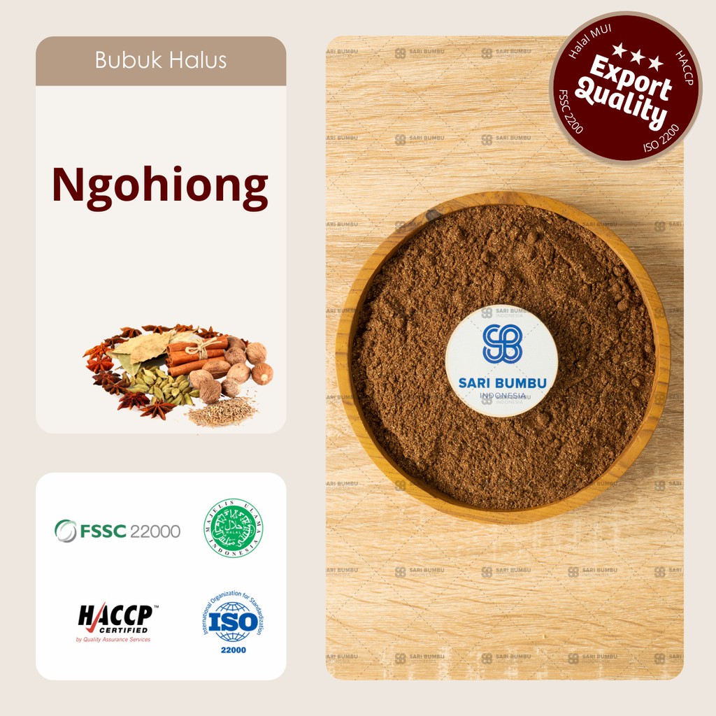 Ngohiong yang di proses dengan sangat higienis dengan standar mutu Internasional. Ngo hiong adalah campuran dari lima rempah-rempah, pekak, kayu manis, jintan, cengkeh, dan lada, yang meliputi kelima rasa manis, asam, pahit, pedas, dan asin. Bumbu ini sangat popular dalam masakan Tionghoa, didasarkan pada falsafah Tionghoa dalam menyeimbangkan yin dan yang dalam masakan. Walaupun begitu bumbu ini digunakan juga pada masakan Asia lainnya. Biasanya digunakan untuk merendam bebek,ayam dan lengkapi dengan tambahan kecap asin dan jahe.