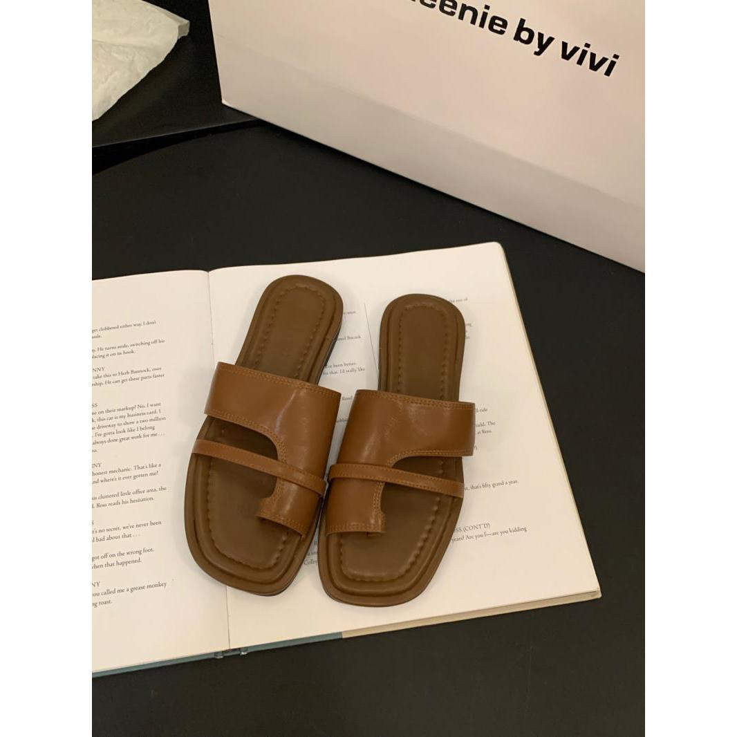 Niche плоские ретро закрытые носки классные тапочки женская обувь летняя одежда 2025 новые летние мягкие пляжные сандалии на подошве 39 коричневый