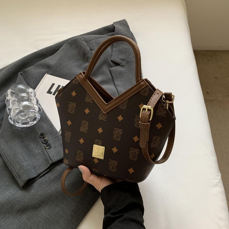 Niche портативная маленькая сумка женская 2024 осень и зима новая мода ретро сумка-ведро текстура сумка через плечо сумка-мессенджер