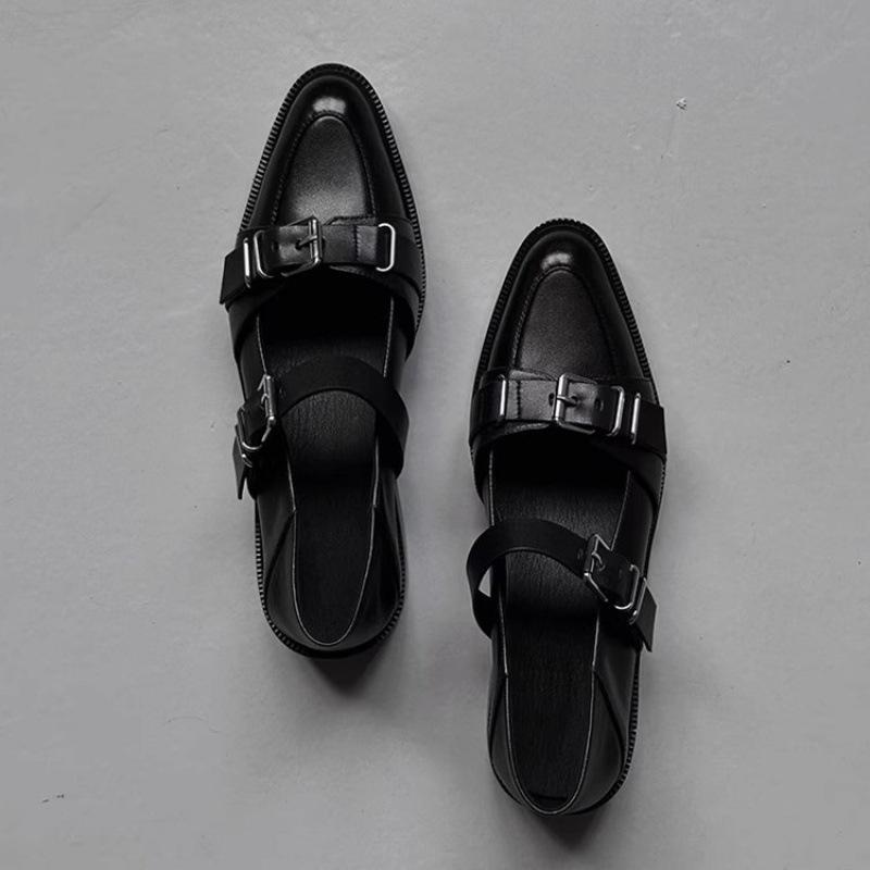 Niche с круглым носком и мелким горлом, сандалии, летние темные кожаные туфли в стиле панк, женские 2025, новые черные туфли 35