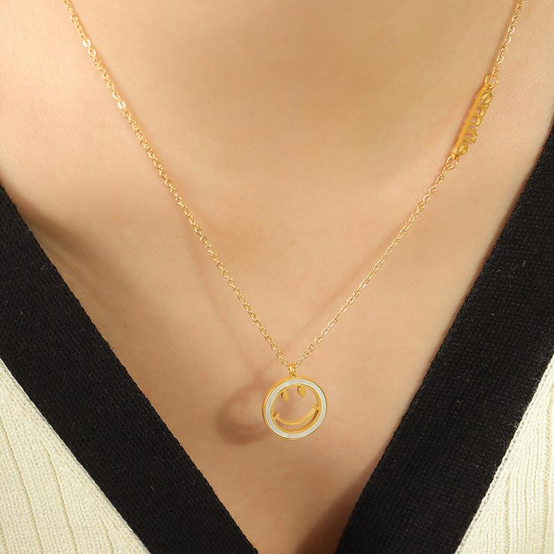 Niche Design Flush White Sea Shell Smiley Face игривое ожерелье с подвеской Универсальная титановая стальная цепочка с буквами, покрытая 18-каратным золотом