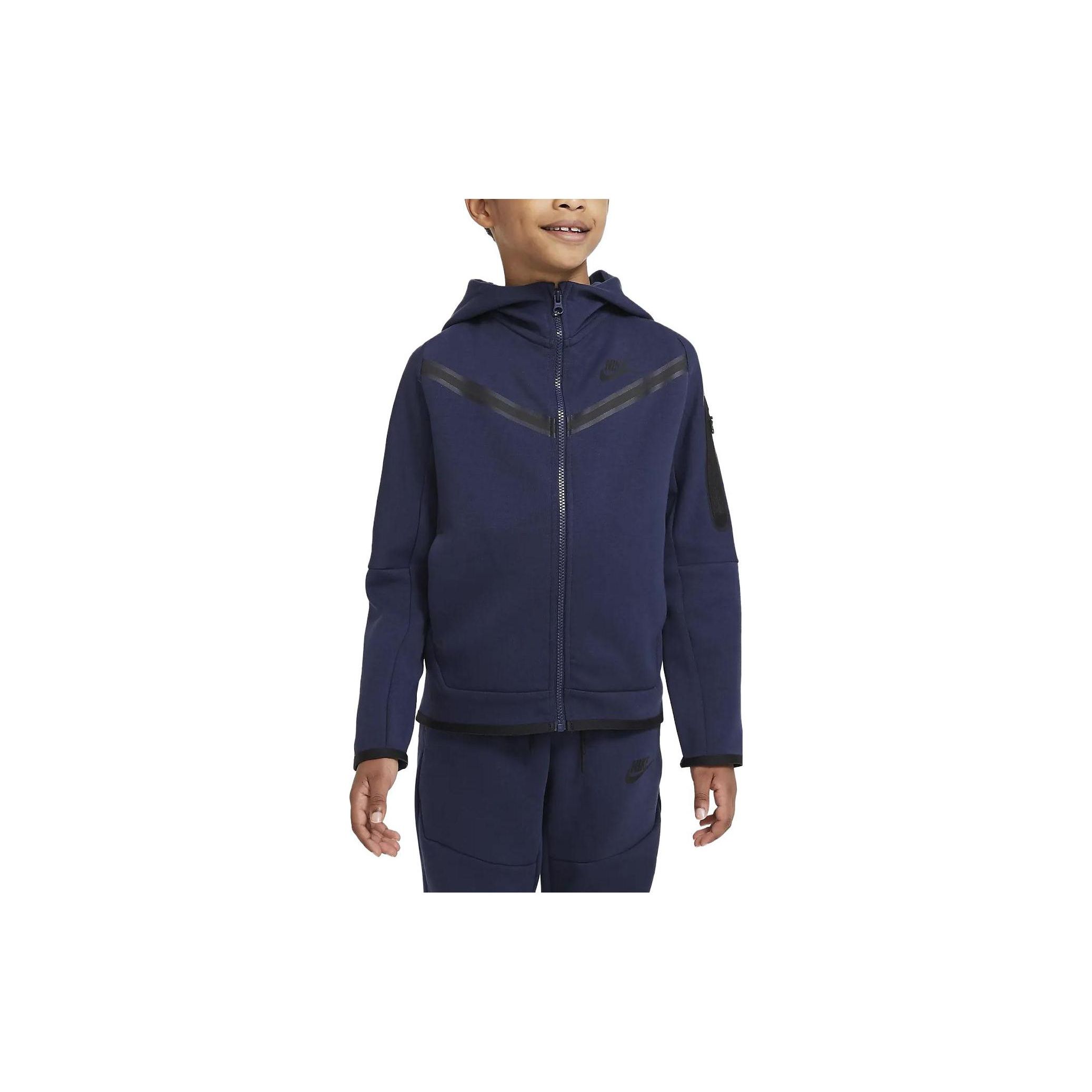 Nike Спортивная детская техническая флисовая толстовка с капюшоном на молнии темно-синего цвета для детей, синие топы CU9223-410 M
