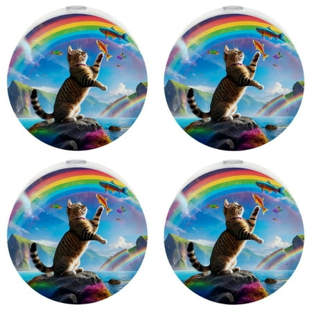 Plug in Led Night Light with Auto Dusk to Dawn Sensor White Nightlights for Hallway Bedroom Kids Room Kitchen Stairway 4 Pack Galaxy Rainbow Planet Animal Cat Funny