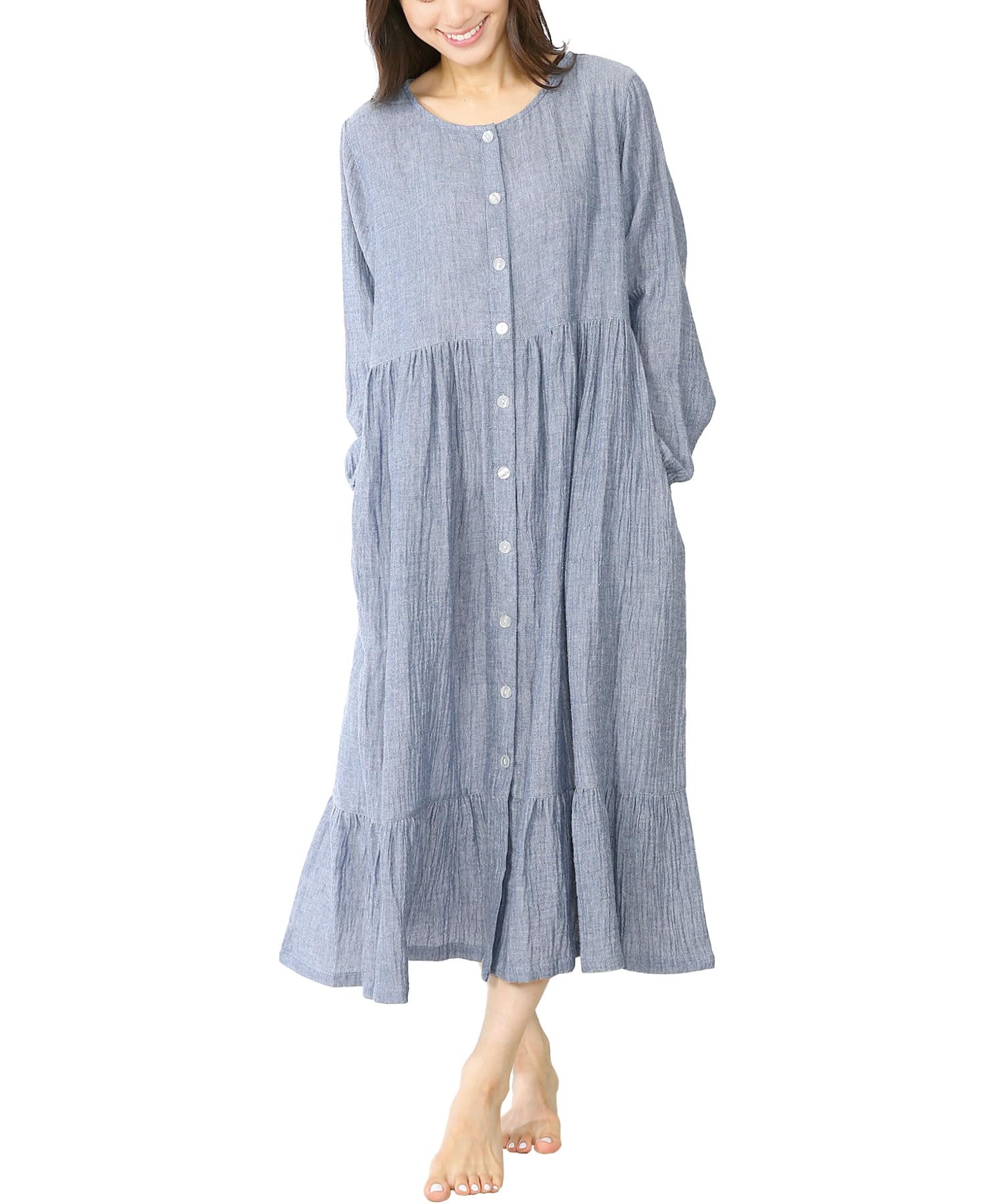 Nishiki Maternity Длинная ночная сорочка с двойным открытием Размер Пижама, Рукава, 100% хлопок, Марля, Приятная к коже, Спереди, Длина, Носить, (Светло-синий