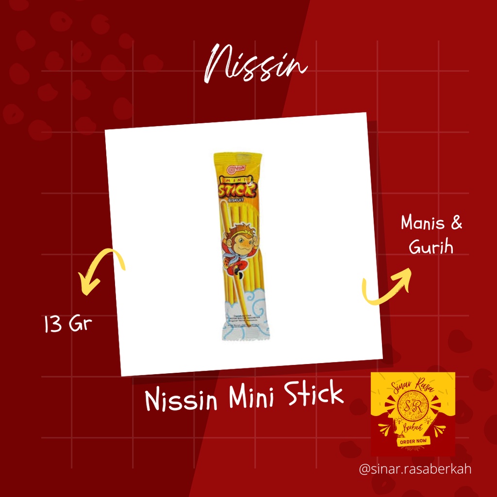 Nissin Mini Stick merupakan biskuit mini stick renyah dengan rasa asin dan sedikit manis.