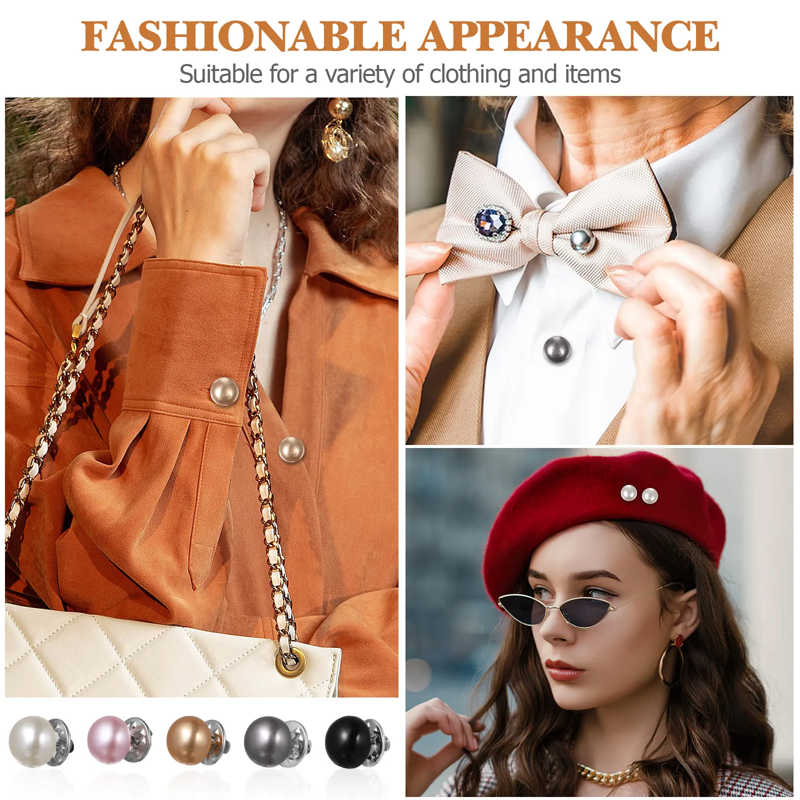 25pcs Anti Exposure Brooch Replacement Buttons Shirt Collar Safety Pins Pearl White Gray Women Dress