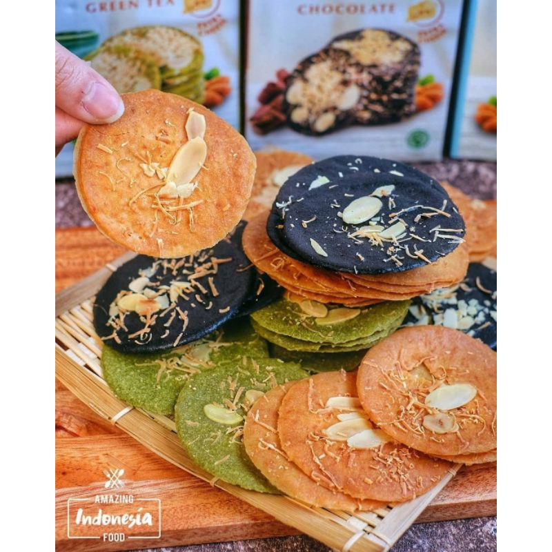 Camilan biskuit almond yang renyah, dengan taburan keju dan kacang almond melimpah, oleh-oleh nusantara khas surabaya