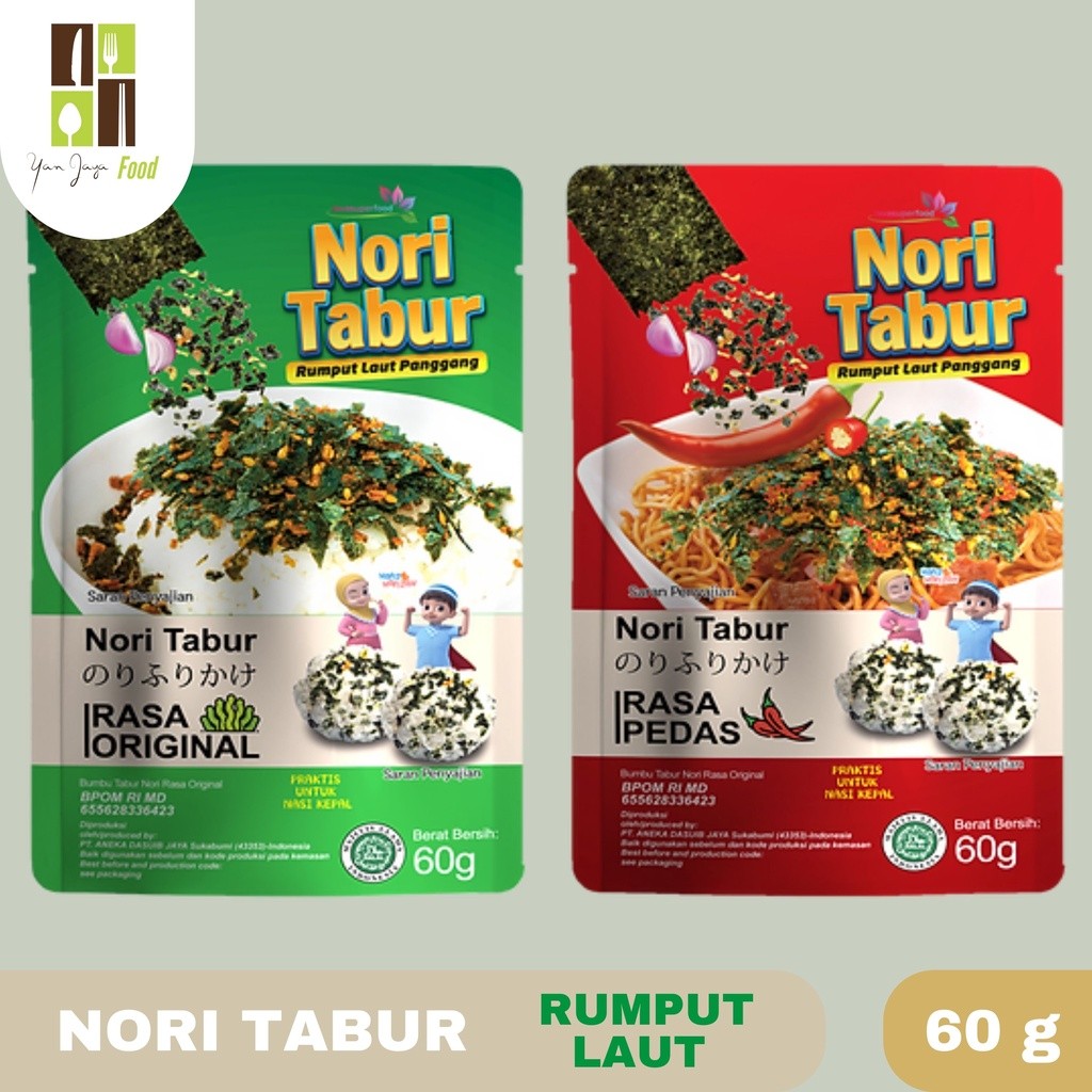 Nori Tabur ini terbuat dari perpaduan rumput laut panggang, bawang goreng dan wijen yang digunakan sebagai tambahan atau taburan untuk menu makanan.