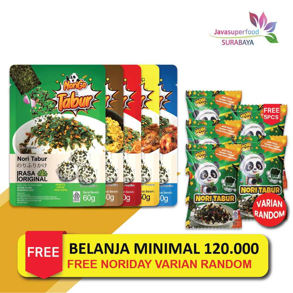 Nori Tabur Java Super Food adalah Nori Tabur yang terbuat dari bahan - bahan yang berkualitas serta memiliki rasa yang enak dan lezat.