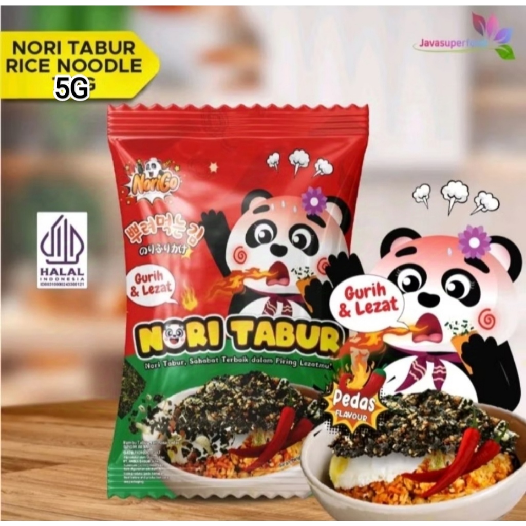 NoriGo menghadirkan Nori Tabur dengan potongan rumput laut panggang, dengan taburan rice noodle, biji wijen, bawang merah dan minyak wijen yang digunakan sebagai taburan toping pelengkap nikmat makanan lezatmu.