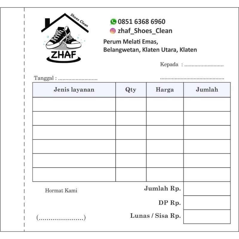 Nota Cuci Sepatu / Nota Cuci Helm / Nota Custom