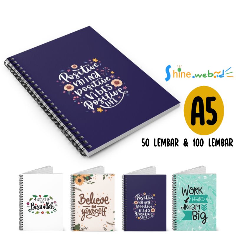 Free packing dus, notebook ukuran A5 14,8x21 ini memiliki cover yang kokoh. Dijilid menggunakan spiral kawat premium dan isi tebal 80 GSM tidak tembus menggunakan pulpen gel. Tersedia pilihan 4 motif cover, isi 50 lembar dan 100 lembar bisa dipilih divarian ya kak, terimakasih :)