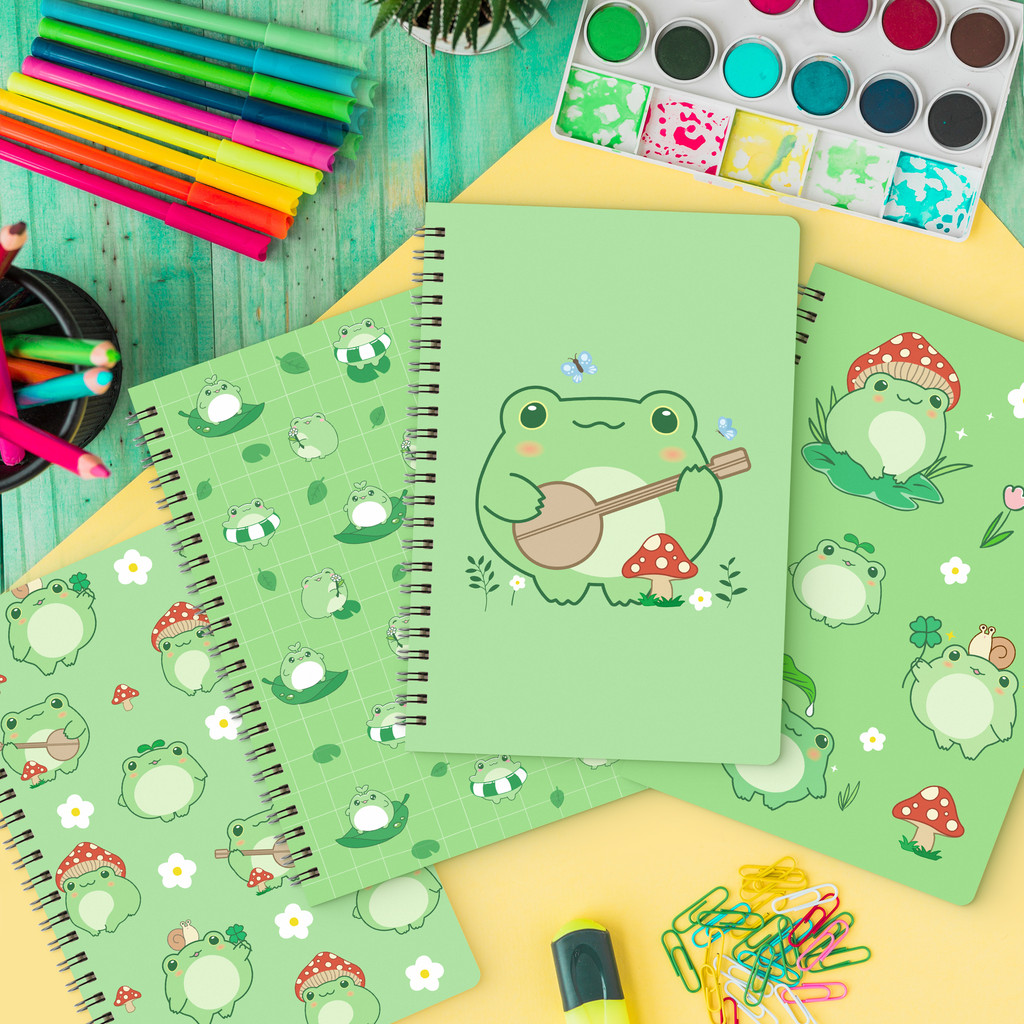 -" Notebook 4-piece set A5 Gift box Stationery back-to-school gift Writing Notepad Green inner cover eye protection coil This frog model
