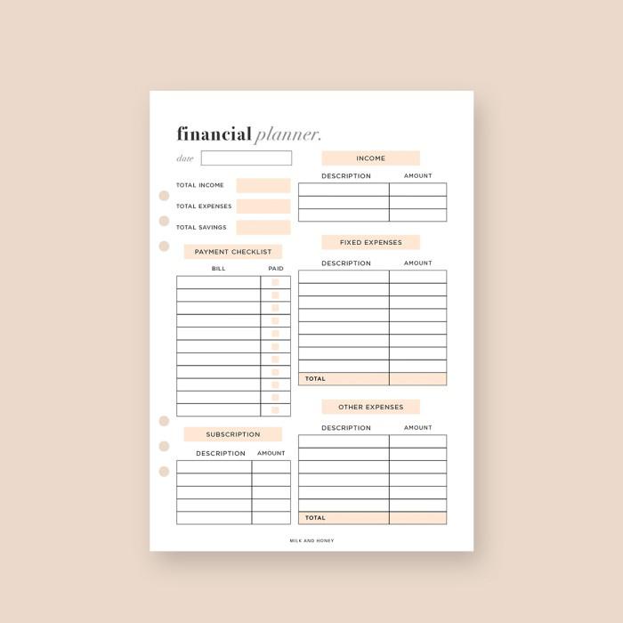 Notebook / A5 Refill Insert: Financial Planner