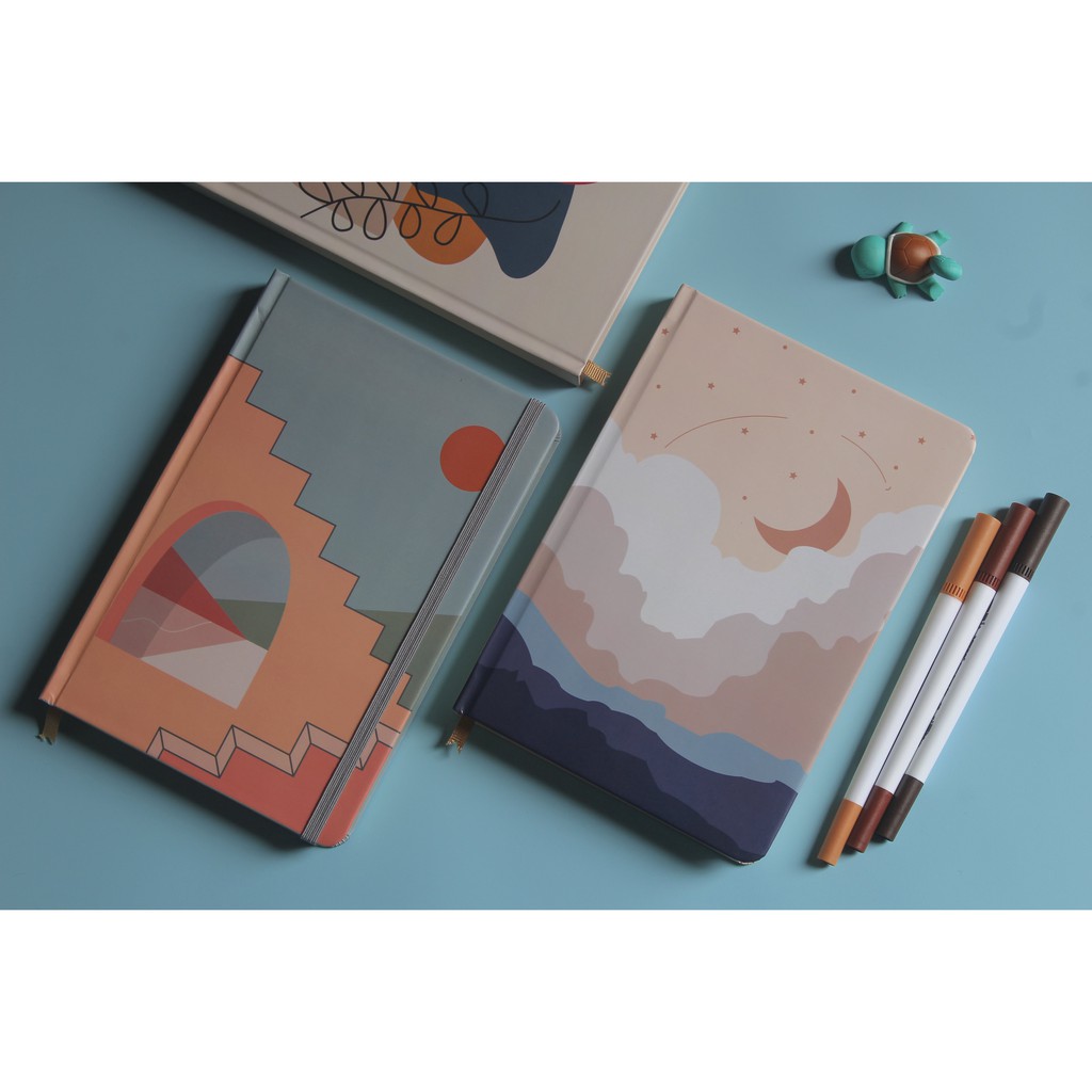 - Hard cover A5 (dilengkapi tali dan bagian ujung notebook rounded)