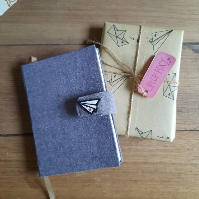 Desain : Pesawat kertas dengan kancing magnet, kertas dengan motif polos sehingga dapat dikreasikan sesuai selera , pada bagian belakang terdapat saku kecil untuk menyimpan kertas kecil atau sticker