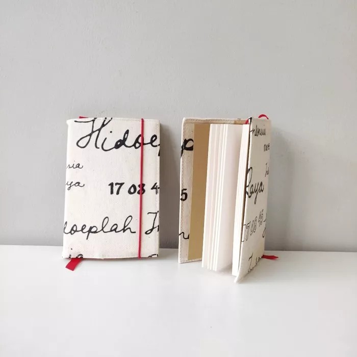 Deskripsi Notebook Indonesia Raya Canvas LivingOur notebook is a good companion to your daily activity. Consists of 85sheets of recycled paper, half lined and half plain. Make your writing and doodling equally fun.Book size 12.5 x 18.5cmThe jacket is detachable, so you can replace the book with a new refill. note: you can also purchase a new refill book