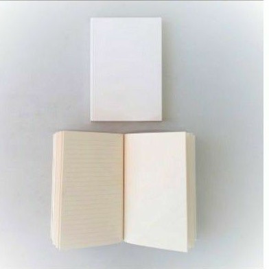 Notebook Insert is a book of 80 sheets or 160pages of recycled novel paper. The sheets are divided into 40 sheets of plain and 40 sheets of lined paper. Hardcover and hot glue bound.