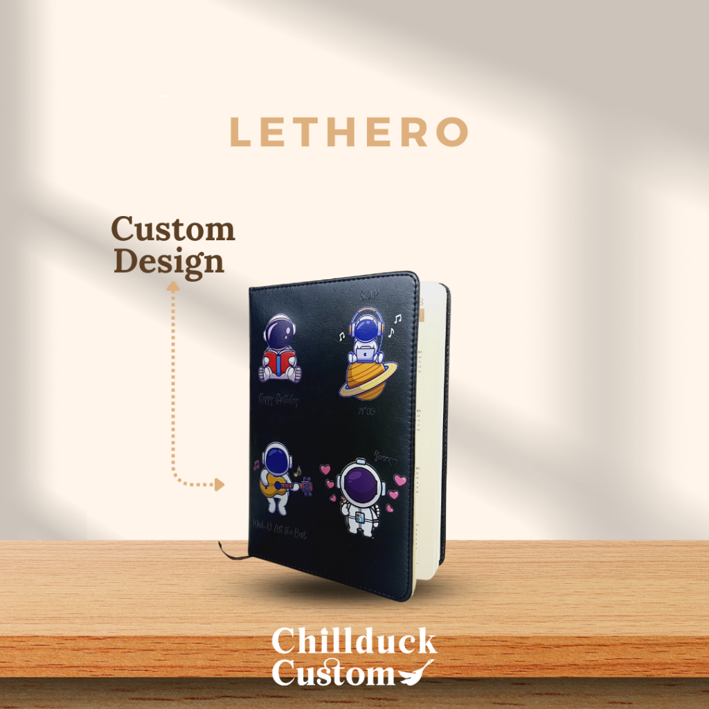 Dengan sampul kulit yang mewah dan sentuhan akhir yang halus, Leathero bukan hanya sekadar tempat untuk mencatat, tetapi juga pernyataan gaya dan prestise. nggak cuma motif nya aja yang cantik banget, Notebook Lethero ini juga sudah include custom UV Print nama kamu agar lebih personalised .