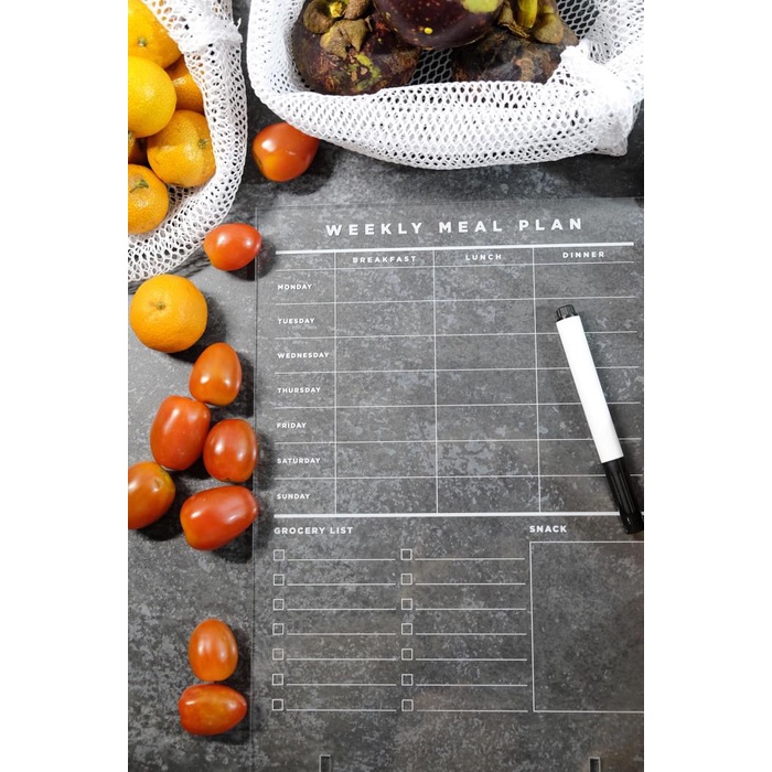 Weekly meal planner terbuat dari akrilik ketebalan 3mm.