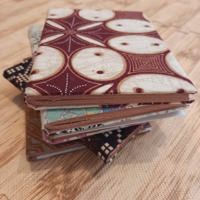 Notebook yang berukuran kecil, sampul buku terbuat dari kain perca