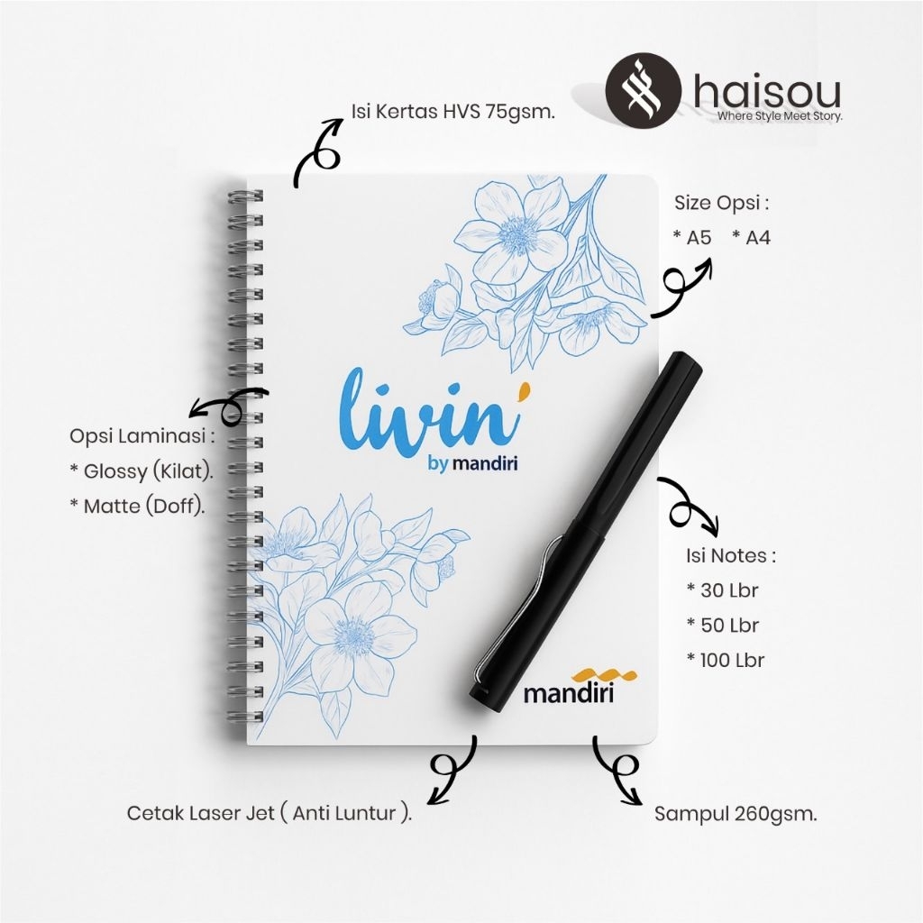 1. Ukuran A5 / B5 / custom (sesuai permintaan)