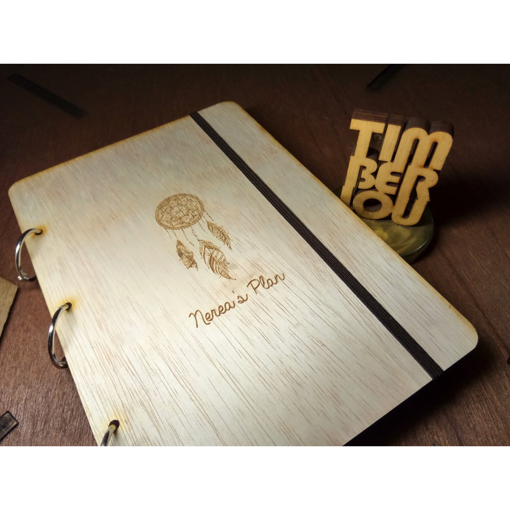 Cover notebook dari kayu sesuai kreasimu. Kirim design yang kamu inginkan dan kami akan membantu membuatkan. Sangat cocok untuk personalize notebook. Bisa dijadikan suvenir pernikahan atau event perusahaan. Juga bisa dipakai sendiri.