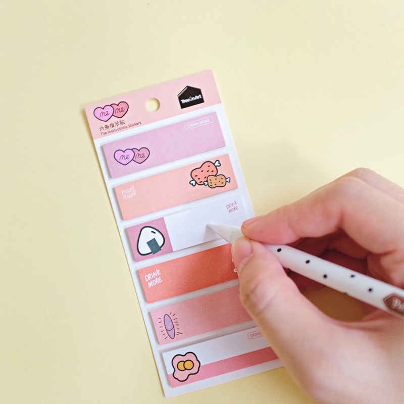 Setiap varian memiliki 6 strip post-its dengan isi masing-masing strip 20 lembar.