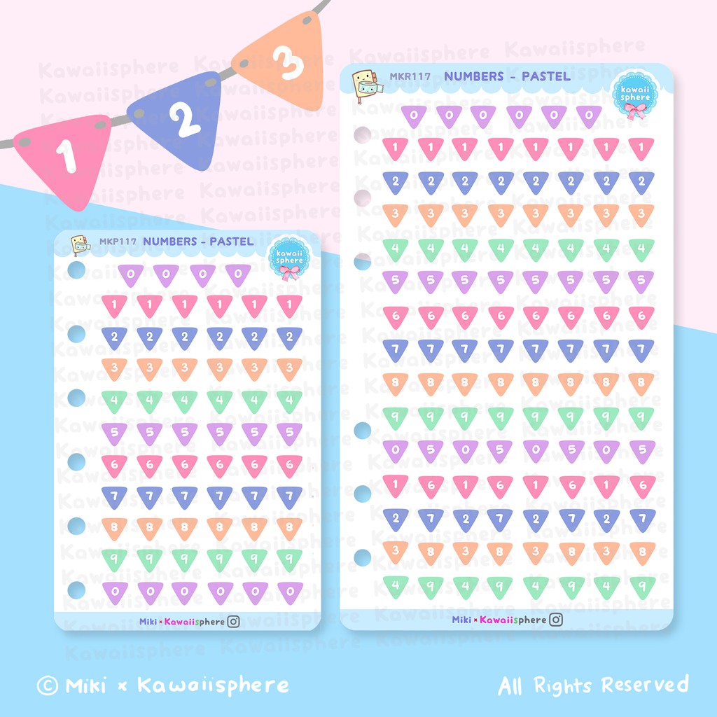 Numbers Pastel | A6 / A7 Ring Planner Refill Sticker | Stiker Angka