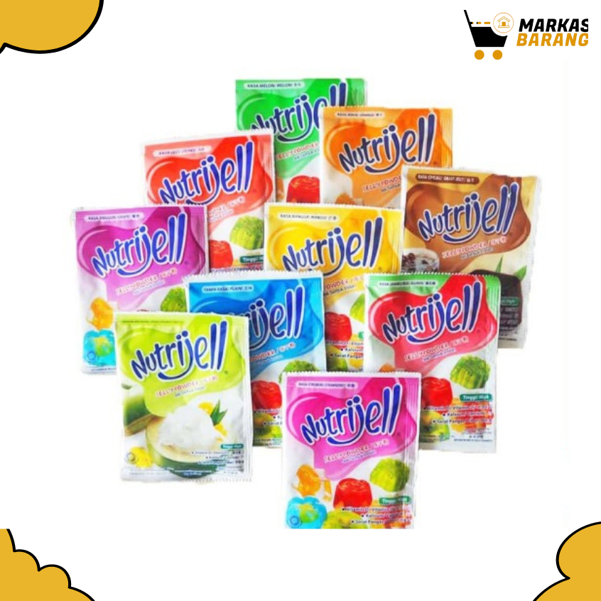 - Nutrijell jelly powder merupakan serbuk premix untuk pembuatan jelly pudding instan ,dengan menggunakan serbuk jelly ini membuat jelly pudding menjadi sangat praktis dan mudah,bisa dibuat kapan saja,cara penyajian sudah tertera dibelakang kemasan produk.