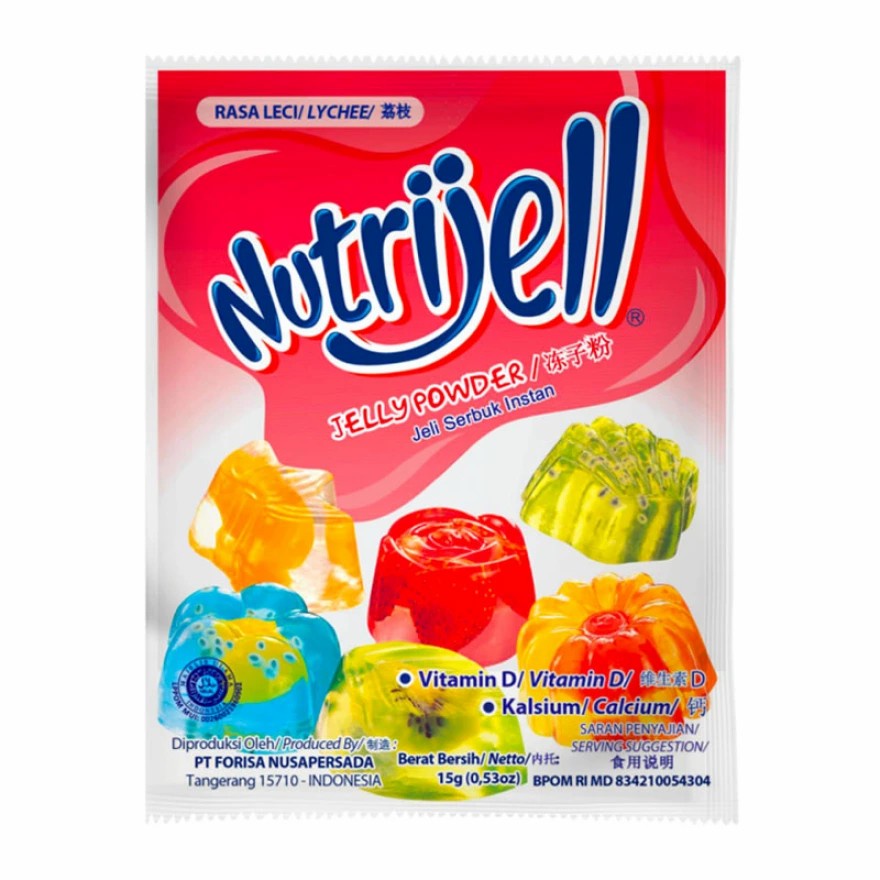 Nutrijell Rasa Leci 15gr merupakan makanan berupa gel yang dikemas dalam bentuk bubuk instan. Nutrijell terbuat dari bahan alami bubuk konyaku dan karagenan, bahan ini sangat baik untuk kesehatan pencernaan karena mengandung banyak serat. Nutrijell sangat tepat dimakan kapan saja dan di mana saja.