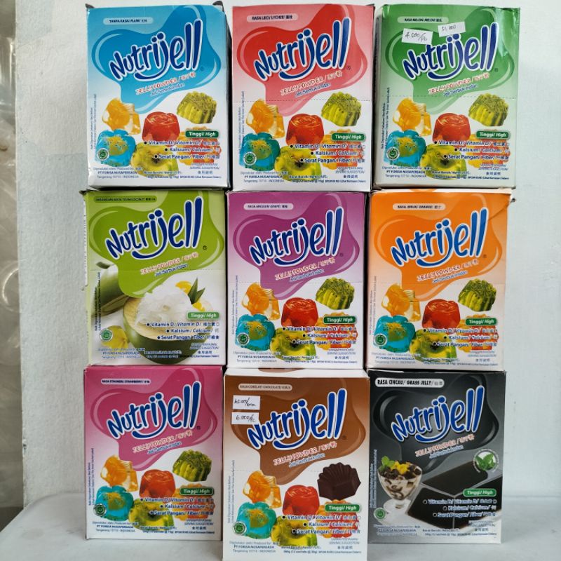 Nutrijell adalah dessert jelly instan yang bisa diolah untuk menciptakan aneka makanan dan minuman. Nutrijell cepat dan mudah dibuat dan juga mengandung serat tinggi. Produk ini terbuat dari konjac alami dan karagenan. Sangat cocok untuk dikonsumsi orang dewasa dan anak-anak.