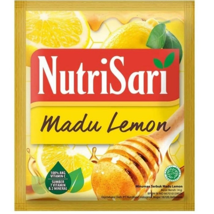 Cobain perpaduan segala kebaikan madu dan segarnya lemon yang nikmat dan kaya manfaat, dalam NutriSari Madu Lemon! Segar dan bernutrisi dari ekstrak madu dan lemon alami, NutriSari Madu Lemon dapat memenuhi 100% kebutuhan vitamin C harian kamu, serta 6 vitamin lain serta kalsium dan fosfor. Cocok disajikan dingin maupun hangat.