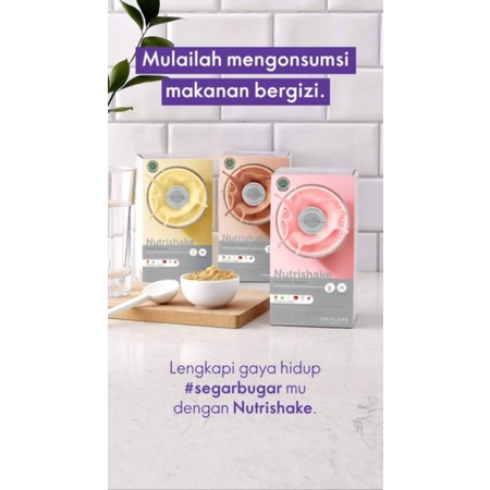 Nutrishake rasa cokelat, Vanilla, dan strawberry adalah minuman berprotein tinggi, kaya akan serat dan mengandung protein dari telur, kacang polong, juga susu, serta serat dari apel, serat bit, dan rosehip. Mengandung pemanis buatan. Protein bermanfaat untuk membangun dan memperbaiki jaringan tubuh. Campur satu sendok bubuk Nutrishake dengan 150 ml air dingin dan kocok hingga rata. 21 porsi*.