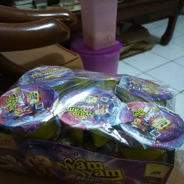 Nyam Nyam adalah makanan ringan yang berbentuk crispy bulat dipadukan dengan coklat. Cocok sekali untuk cemilan dan makanan ini sangat di senangi oleh anak anak