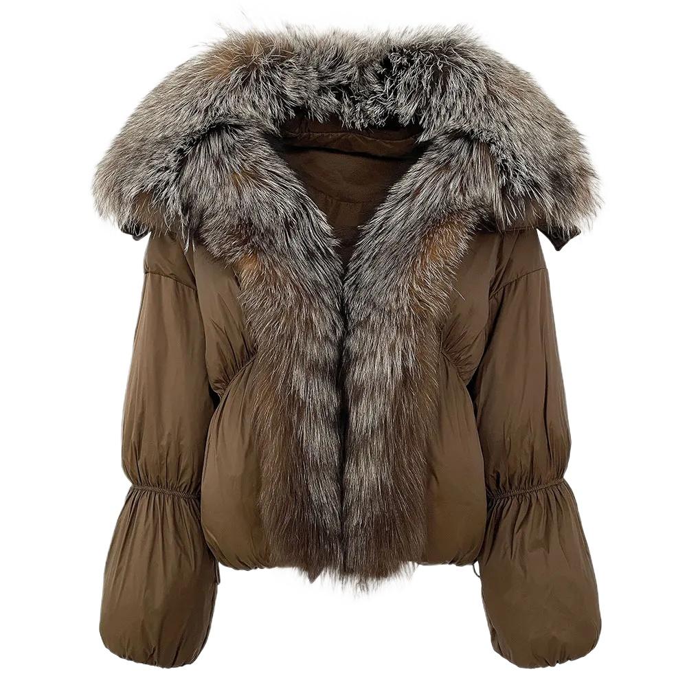 OFTBUY Зимняя куртка женская большая настоящая лисья меховая енотовая воротник натуральный теплый утиный пух пальто короткая верхняя одежда уличная свободная повседневная одежда S