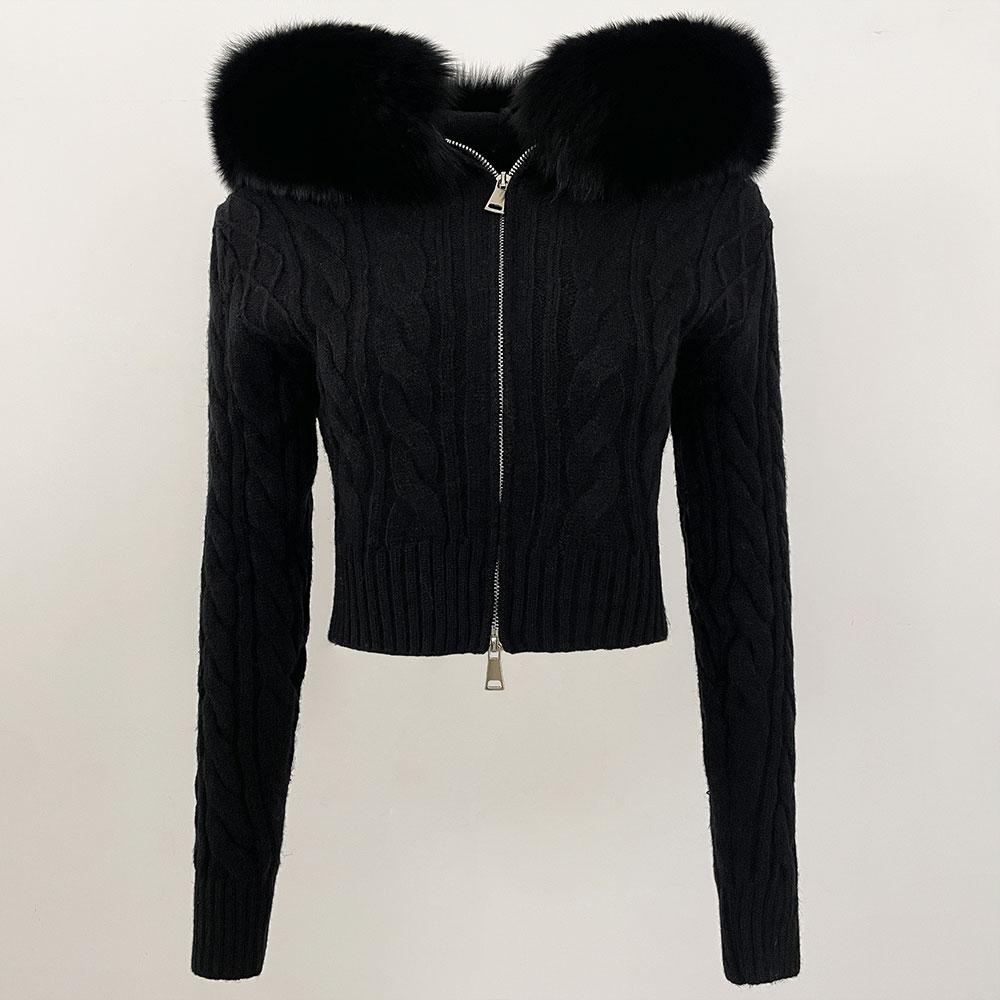 OFTBUY Мягкое зимнее натуральное лисье меховое осеннее теплое вязаное пальто короткая молния с капюшоном женская куртка повседневный свитер куртка тонкая женская элегантная оптовая продажа