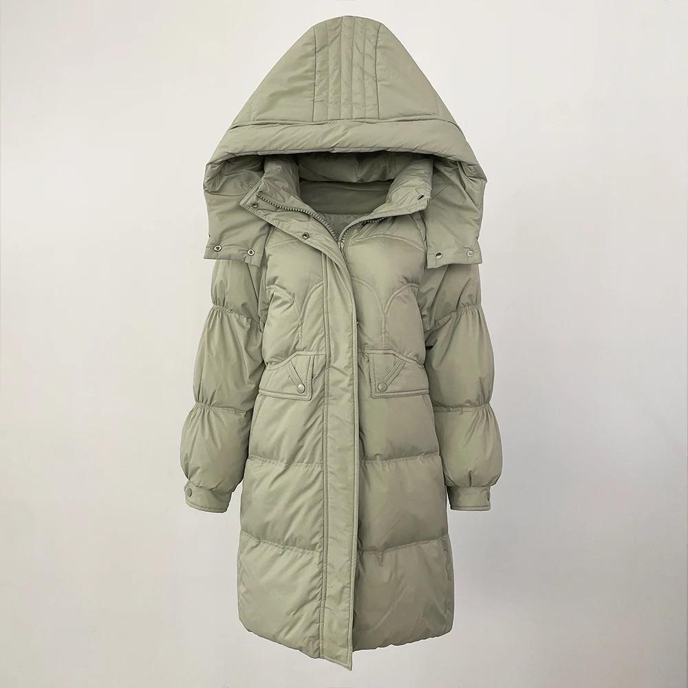 OFTBUY Осень-зима 90% белый утиный пух теплая куртка женская пуховик средней длины пальто утолщенное теплое корейский стиль свободное пальто L зелёный