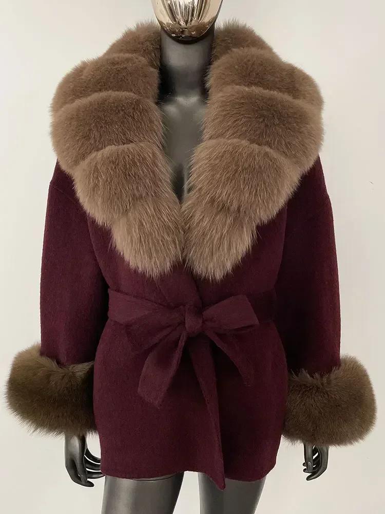 OFTBUY 2024 Зимняя куртка с карманом на поясе, натуральное пальто из натурального меха енота и лисицы, женская свободная верхняя одежда, повседневная верхняя одежда, уличная одежда M