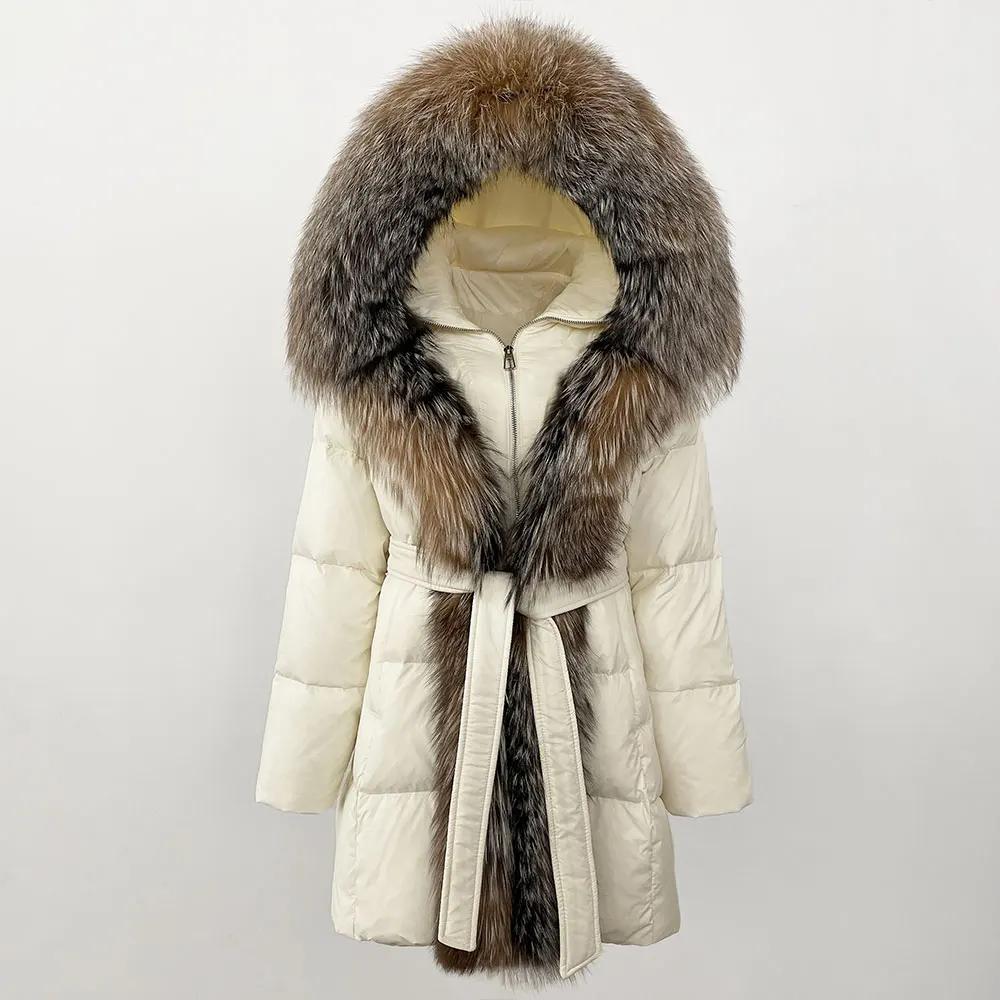 OFTBUY 2024 зимняя куртка женская с натуральным воротником из натурального меха лисы и капюшоном, пуховое пальто из белой утки, толстая теплая уличная повседневная верхняя одежда L