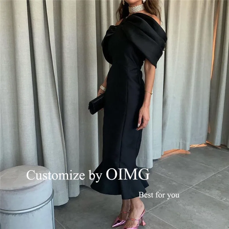 OIMG винтажное белое черное вечернее платье-Русалка с открытыми плечами стрейчевое арабское женское официальное платье миди платье для выпускного вечера