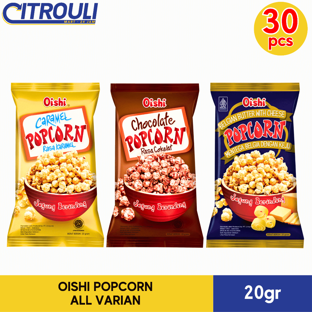 OISHI POPCORN 20gr (ISI 30pcs / 3 RENTENG) ALL VARIAN