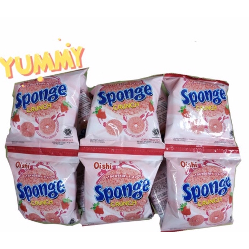 OISHI SPONGE CRUNCH RASA STRAWBERRY (1 RENCENG ISI 10 BUNGKUS)