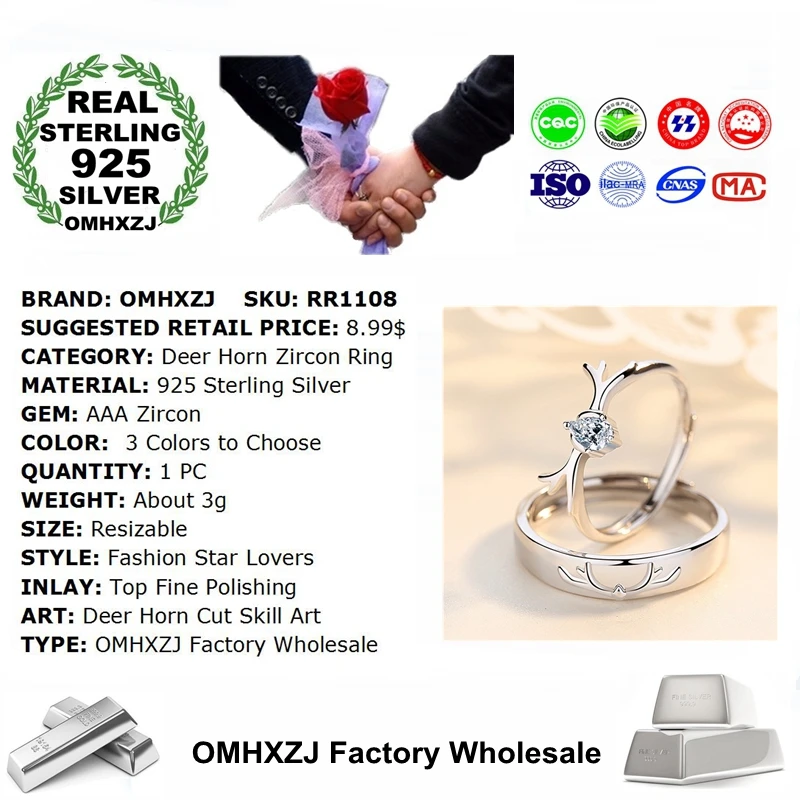 OMHXZJ RR1108 оптовая продажа, Европейская мода, прекрасные любовники, вечерние, подарок на день рождения, свадьбу, рога оленя, AAA циркон, кольцо из ...