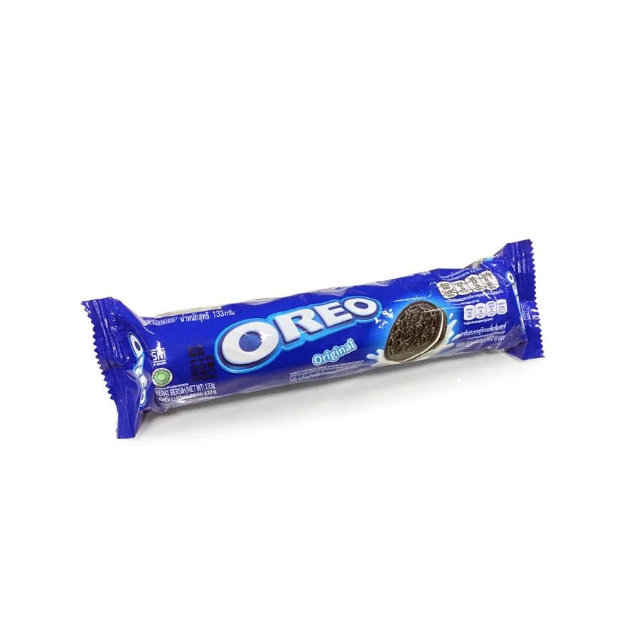 Biskuit sandwich coklat dengan krim rasa vanila.