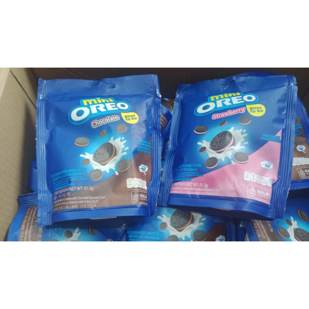 biskuit oreo dengan dua rasa stroberi dan coklat dengan bentuk yg kecil kecil