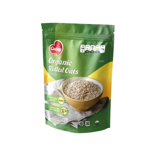 Oatsy Organic Rolled Oats 500g membantu mendukung pencernaan, memberikan energi tahan lama, serta menjaga rasa kenyang lebih lama.