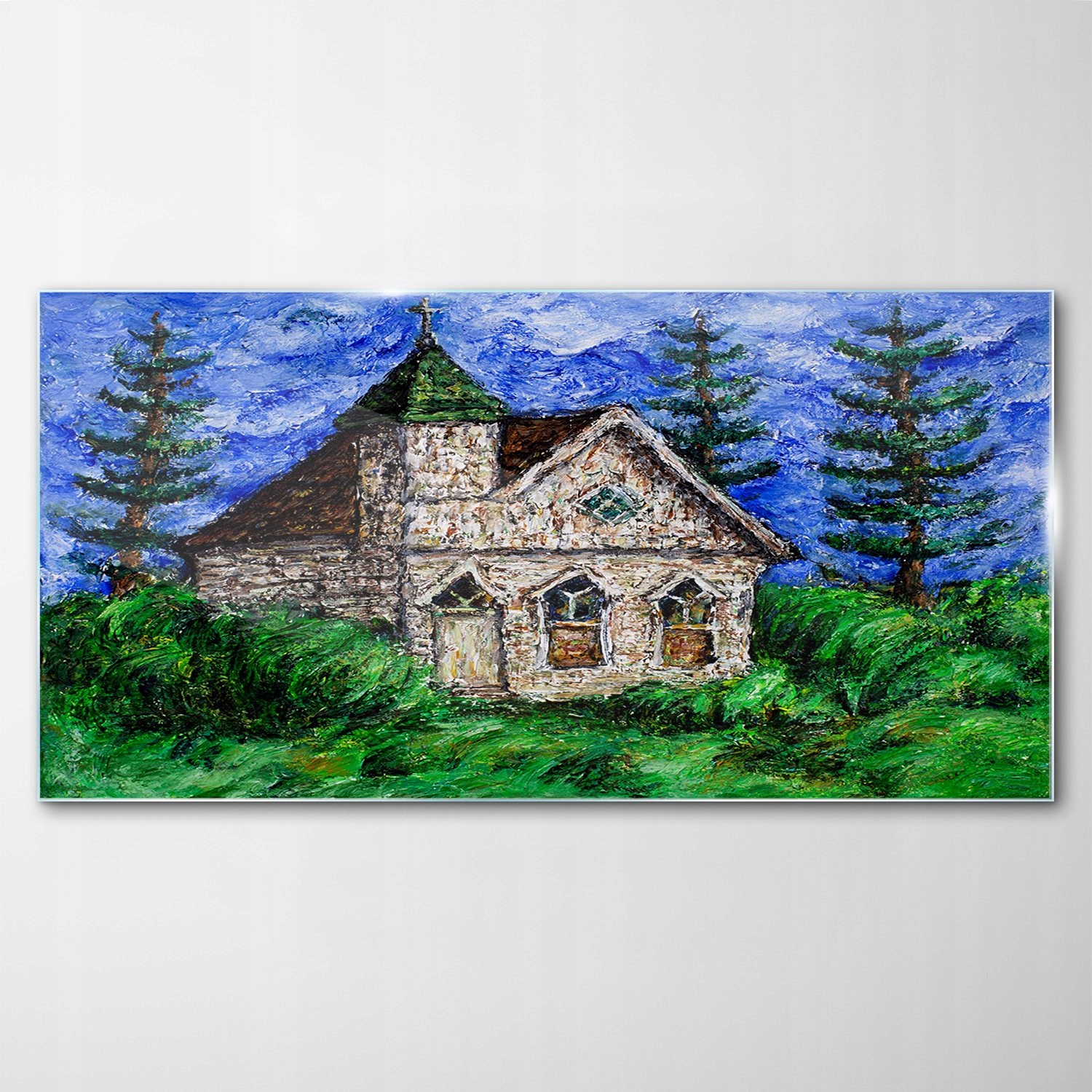 Obraz na Szkle Dekor Krajobraz Łąka Kościół 140x70